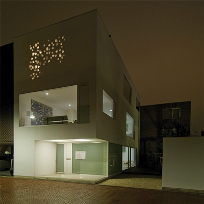 Het kunstwerk zorgt voor een speelse manier van daglichttoetreding in de ruimtes op de drie verdiepingen van het woonhuis. ’s Avonds draait het ‘lichtspel’ naar buiten toe.