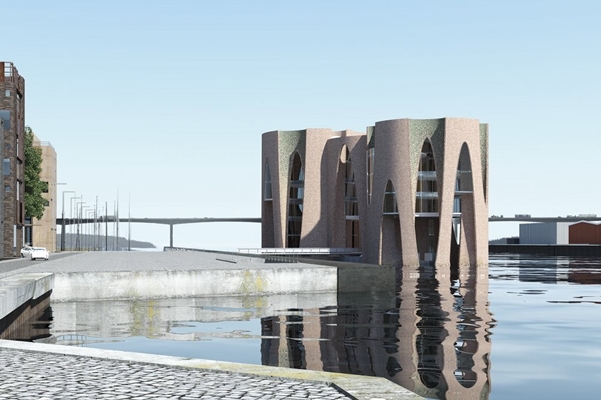 het ontwerp gepresenteerd voor de uitbreiding van het havengebied in de Deense plaats Vejle. Onderdeel van het masterplan is de aanleg van een nieuw haveneiland met daarop twaalf gebouwen met een woon- of commerciële functie.
