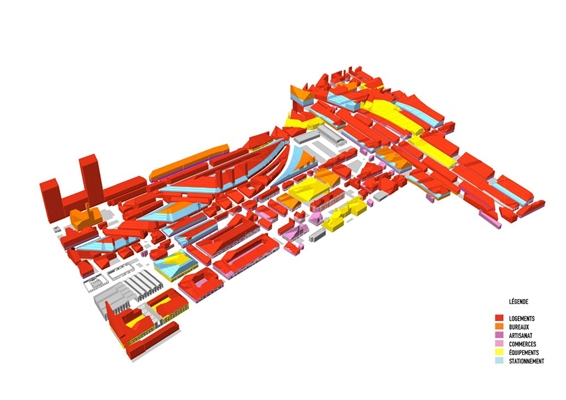 Er wordt namelijk voortgeborduurd op de bestaande structuren van het gebied aan de rechteroever van de Garonne, waar momenteel loodsen, lege kazernes en in onbruik geraakte spoorwegemplacements te vinden zijn. Alle bestaande gebouwen zullen blijven bestaan, deels in verdichte vorm of als onderdeel van een nieuw gebouw, zegt MVRDV.