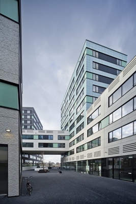 De gebouwdelen van het pand zijn rondom een plein gebouwd dat dient als ontmoetingsplek. In het plein is een doorkijk gemaakt naar de parkeergarage. Deze zorgt onder meer voor extra daglicht in de garage.