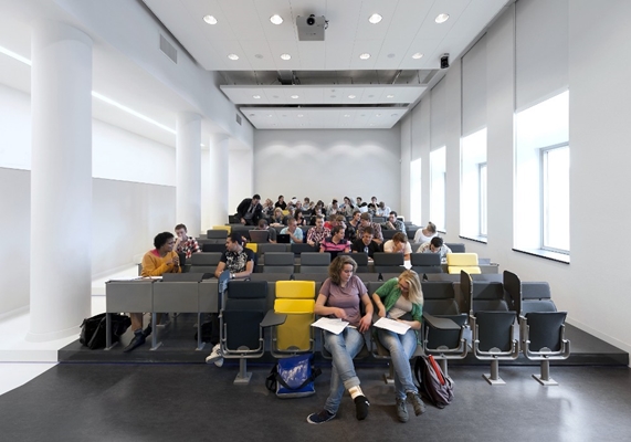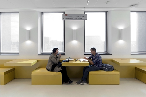 Op ieder verdieping is een leerplein gecreëerd waar studenten kunnen werken. Om de wisselende studentenaantallen per collegejaar op te vangen is er gekozen voor verplaatsbaar en inschuifbaar meubilair. Zo kunnen ook verschillende opstellingen in de ruimtes worden gemaakt.