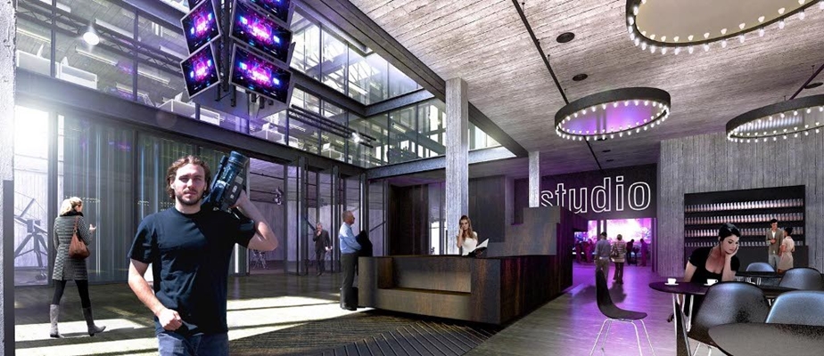 Het atrium is ietwat teruggetrokken van de rest van de gevel en dient als gezamenlijke entree voor personeel en bezoekers. Achter het kantoorpand wordt de studio gebouwd voor televisieopnames met publiek. Het gebouw krijgt een ondergrondse parkeergarage.