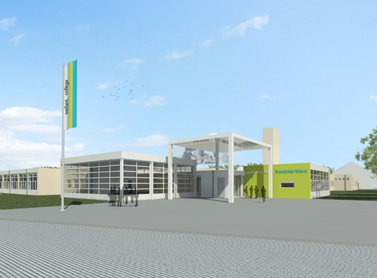 Oude en nieuwe lokalen liggen in een domein rondom centrale lespleinen. Deze pleinen worden betrokken in het onderwijssysteem. Gezamenlijke ruimten en vaklokalen bevinden zich in het hart van het gebouw.