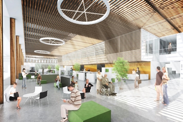Centraal in het ontwerp staat het klantcontactcentrum waar de ontmoeting met patiënten het hoofdthema is, zegt Inbo. “De balies en spreekkamers zijn logisch en overzichtelijk gepositioneerd. Het combineren van wachtruimten voorkomt versnippering en maakt pieken makkelijker op te vangen.”
