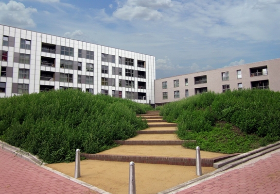In het project Modelwijk Laken van inzender Vermat ramen en zonwering waardeerde de jury de toepassing van hoogwaardige materialen. “Zoals hoog performante aluprofielen en hoog rendementsbeglazing voor de ramen, evenals de geventileerde glasgevel, binnen een kader van sociale woningbouw en navenante beperkte budgetten.”