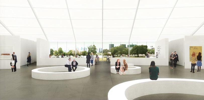De eerste Frieze Art Fair van New York vindt plaats in een tent die over een landgoed kronkelt. Dat blijkt uit het ontwerp dat