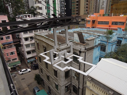 heeft een ‘illegale’ installatie gebouwd voor de biënnale van Hongkong en Shenzhen van dit jaar. Het bouwwerk is op het dak van het Wan Chai Visual Archive geplaatst.
