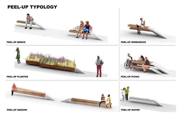 Langs het pad worden zitbanken, speelelementen voor kinderen en uitkijkpunten gerealiseerd. In het uitstulpsel van de Highline in West 30th Street komt een theaterplein dat omringd wordt door drie tribunes, of een algemeen plein met zitbanken.