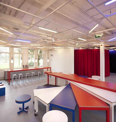 Concrete besloot de plafondconstructie in het gebouw niet te vervangen, maar te vernieuwen. In de constructie is nieuwe verlichting verwerkt in de vorm van tl-buizen in diverse kleuren, passend bij de meubels.