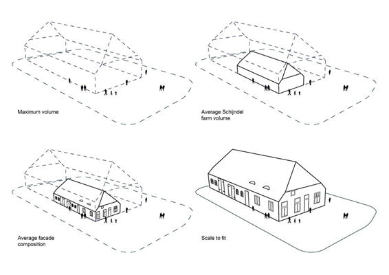 Het door de gemeente vastgestelde maximale volume van het gebouw leek op de vorm van een lokale boerderij, zegt MVRDV. Het bureau registreerde en fotografeerde alle overgebleven Schijndelse boerderijen en vroeg kunstenaar Frank van der Salm om een ideale, gemiddelde boerderij te componeren als collage van de bestaande boerderijen.