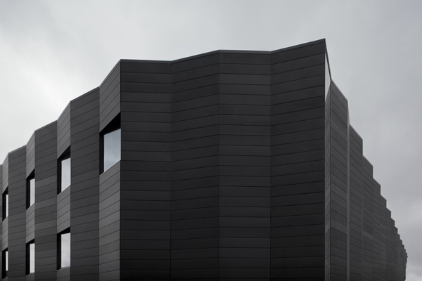 In tegenstelling tot de lichte voorzijde van het gebouw zijn de overige gevels uitgevoerd in zwarte stalen platen, die samen een zigzaggend patroon vormen. Alle voor het gebouw gebruikte materialen zijn afkomstig uit de omgeving.