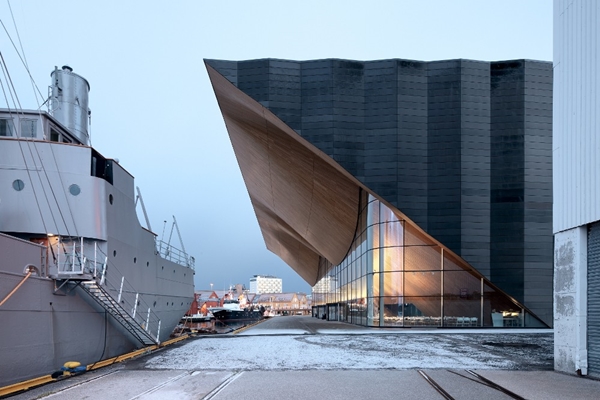 In het Noorse Kristiansand is een kunst- en cultuurcentrum met een golvende eikenhouten luifel geopend. Het Finse architectenbureau