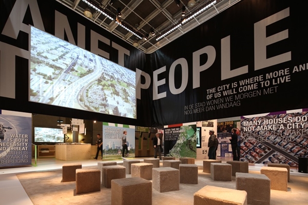 Kossmann en zijn team hebben de tentoonstelling ontworpen als een stad, waarbij de door hem genoemde ruimte fungeert als plein. Hier neemt de bezoeker de drukke expositie en de vele zichtlijnen er omheen in zich op, en kiest het gedeelte dat hem het meest aanspreekt. Billboards met daarop statements over de themaās fungeren als lokker.