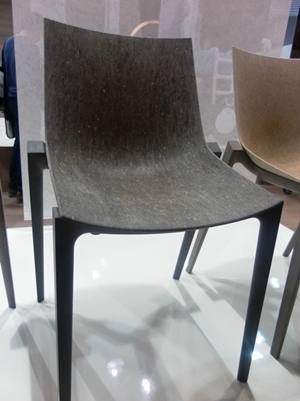 Bij Magis was een elegant ontwerp van Philippe Starck te zien, dat was uitgevoerd in gerecycled polypropyleen én geperste natuurvezels als hennep. De zitting van de stoelen vertoont een natuurlijke ruwheid, met de tekening van de vezels.