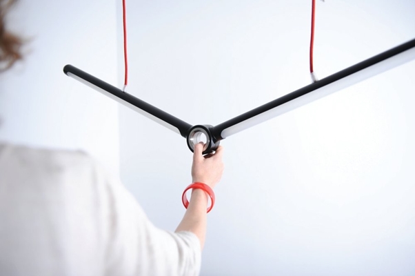 De buizenlamp Cyclops doet zijn naam eer aan door het grote ‘oog’ dat in het midden van de lamp is gesitueerd. Dit oog is het middel om de lamp aan en uit te schakelen. Door de lamp te breken met het oog schakelt de lamp uit, door het oog weer op te tillen springt de lamp recht en schakelt hij aan. De vorm is in de lamp ook de functie, is Mulders idee.