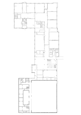 “De sporthal is georiënteerd op het zuiden en minimaliseert het oppervlak aan zonbelaste gevel, door als buffer te fungeren”, legt Jorissen Simonetti architecten de plattegrond van het schoolgebouw uit. “De vaklokalen liggen op het oosten, westen en noorden en hebben weinig last van opwarming en hinderlijk licht door de zon.”