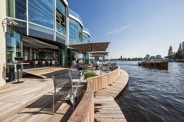 Aan het water van de Amstel-rivier nabij de Omval in Amsterdam is Café Restaurant Riva geopend. Het bureau