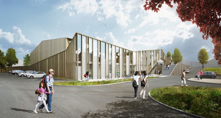 In het gebouw worden een deelbare sporthal met onderwijsfaciliteiten en een groot deel van het programma van het wijkcentrum ondergebracht. “Het gepresenteerde ontwerp betreft een eerste visie waarbij de intenties van een duurzaam en groen complex tot uitdrukking zijn gekomen in een dynamisch, landschappelijk, en transparant gebouw”, vertelt het architectenbureau.