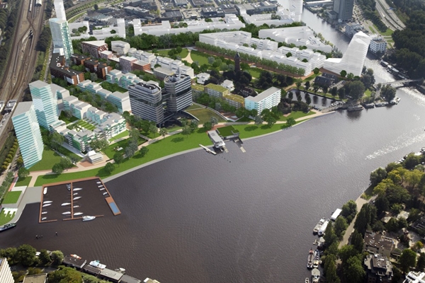 , een nieuwe woonwijk in het Amsterdamse Overamstel, gaat door. De gemeente maakt het terrein beschikbaar voor de realisatie van een groot aantal woningen, een park, een winkelcentrum en een school.