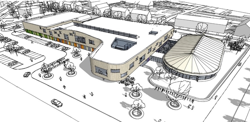 MoederscheimMoonen en SPRING presenteren een eerste visie met de focus op de stedenbouwkundige inpassing van het nieuwe gebouw. Het 7.700 vierkante meter omvattende pand past zich onder meer aan aan de naastgelegen bibliotheek van Dalfsen.