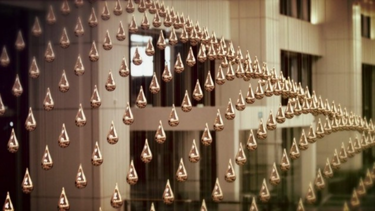 Video: bewegende druppelinstallatie Kinetic Rain