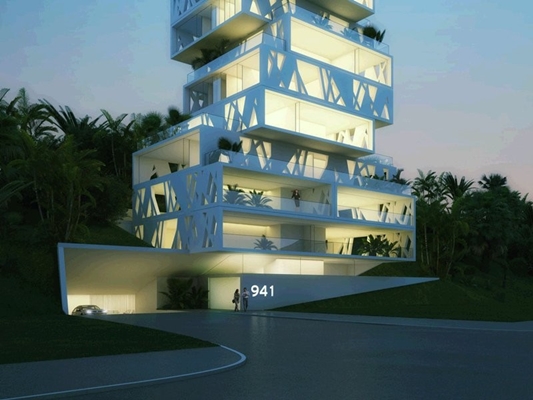 De toren omvat negentien appartementen die in grootte variëren. De opbouw van de toren is zowel expressief als generiek, aldus de bureaucombinatie. “Vanaf de tweede verdieping bevindt zich op iedere verdieping een uniek appartement. Door het draaien van de volumes per verdieping ontstaat op iedere laag een royale buitenruimte, op het dak van de onderburen.”