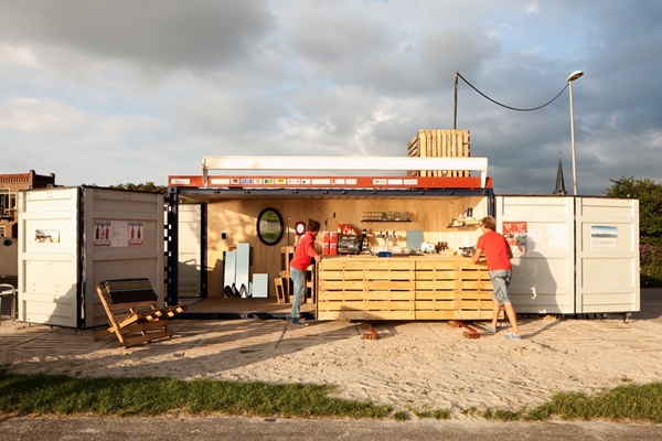 Het paviljoen bestaat uit een zeecontainer, aangevuld met pallets en andere benodigdheden die het geschikt maken voor exploitatie. De materialen zijn met behulp van sponsors bijeengebracht, aangezien er nauwelijks financiële middelen beschikbaar waren.