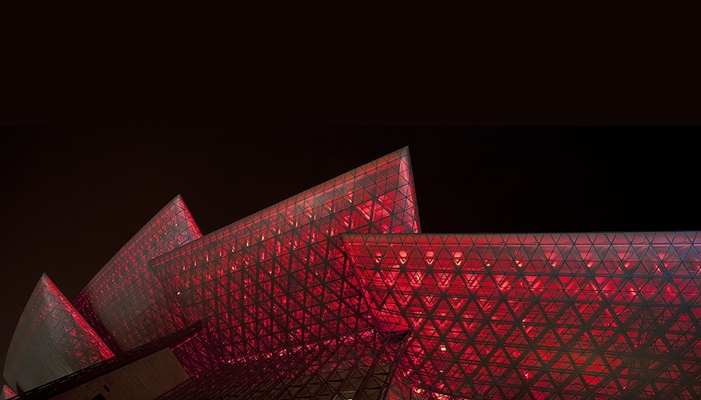 De Chinese stad Wuxi heeft zijn eigen ‘Sydney Opera House’. Op een kunstmatig schiereiland nabij een brug staat sinds dit jaar een nieuwe opera en theater. Al gelang het type voorstelling dat er plaats vindt, kan het gebouw van kleur veranderen.
