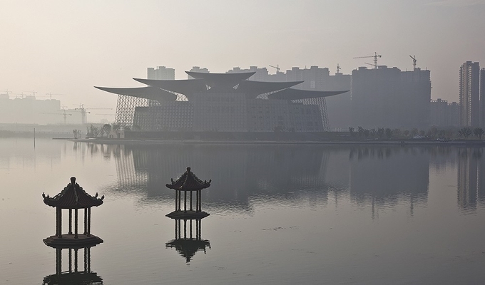 De enorme dakbladen van het vijftig meter hoge gebouw geven het complex volgens de architecten het voorkomen van een vlinder, maar van een afstand gezien zou het theater evengoed een oude Chinese tempel kunnen zijn.