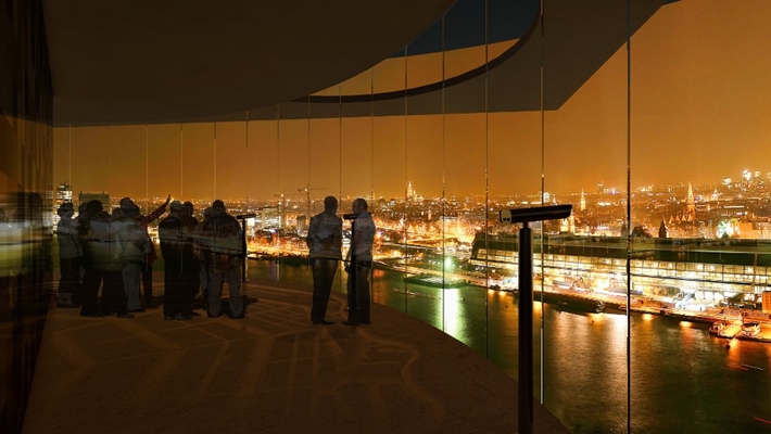 Een andere functie die de toren moet krijgen is dat van observatiepunt, met een ronddraaiend restaurant. Vanaf het observatiepunt op de toren heeft de bezoeker uitzicht over het IJ en het historische centrum van Amsterdam.