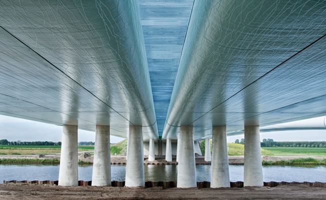 De opdracht was om een brug te ontwerpen met aandacht voor de ecologische en landschappelijke waarde van het gebied. De brug over het Wilhelminakanaal bestaat uit een verkeersbrug met twee identieke brugdelen, geflankeerd door een ecopassage. De brugdelen zijn bekleed met een beplating van composietpanelen. De panelen vertonen een willekeurige vezelstructuur in een zachtgroene kleur.