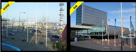 Voor- en nasituatie van RAI (Benthem Crouwel Architekten), zoals te zien op www.architecten.nl