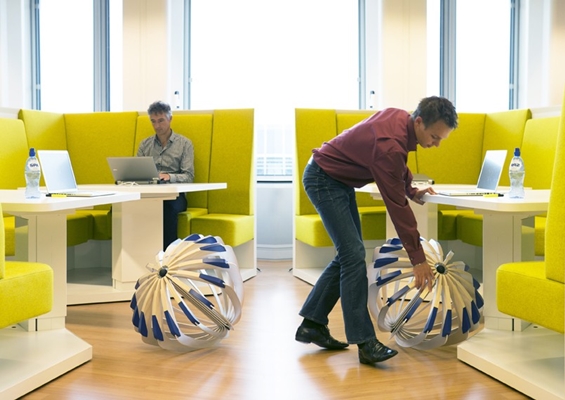 heeft een krukje ontworpen dat de werknemers helpt binnen Het Nieuwe Werken de balans te hervinden.