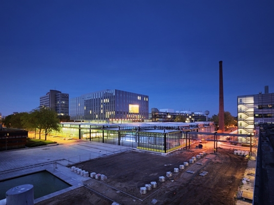 heeft de uit 1958 stammende hal verbouwd en er een nieuw faculteitsgebouw bovenop geplaatst. Het vernieuwde hart van de TU herbergt onder meer de centrale bibliotheek en studieplekken.