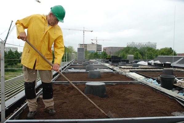 Vandaag wordt het groendak bij het