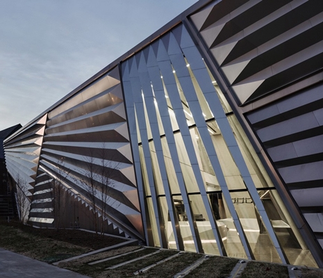 Met zijn scherpe vormen en gevel van staal en glas contrasteert het museum met de andere gebouwen op de campus van Michigan State University (MSU). Het gebouw staat aan de noordkant van het universiteitsterrein, tegen de snelweg en de daarboven gelegen woonwijk aan. Daardoor krijgt het een functie als verbindende schakel.