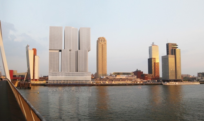 Copyright: Impressie, gezien vanaf de Erasmusbrug. OMA