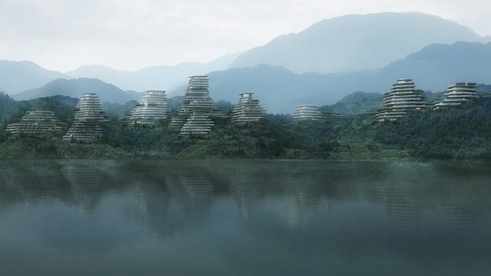 In de Chinese Huangshan-bergen verrijst in 2014 een nieuw dorp. Architectenbureau