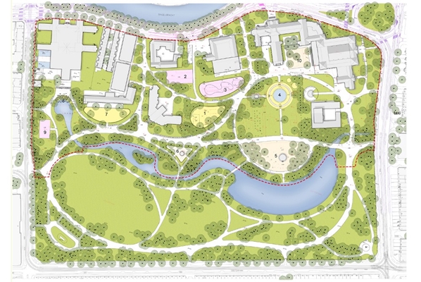 Bij de aanstaande verdubbeling wordt het noordelijk deel bij het reeds bestaande Oosterpark betrokken, waarbij een samenhangend geheel moet ontstaan. “De vormentaal van de late Engelse landschapsstijl is hierbij het leidmotief geweest”, zegt