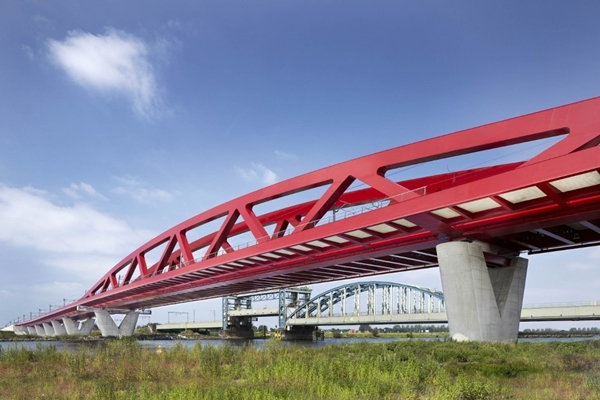 ontworpen brug heeft de 140 jaar oude spoorbrug over de IJssel vervangen. De brug is breder, stiller en dankzij zijn rode kleur opvallender dan diens voorganger.