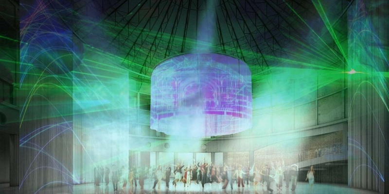 Voor een multifunctioneel gebruik en een theatrale aankleding van het atrium, zal een set van projectiegordijnen worden opgehangen. Met de ‘Magic Curtain’ kan de ruimte donkerder worden gemaakt en grootschalige projecties worden getoond, zegt Atelier Kempe Thill.