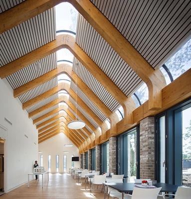 Cito vertelt dat deze hoogte wel een gespreksonderwerp is geweest bij bezuinigingsronden, maar benadrukt het belang ervan. Juist een hoge ruimte, in combinatie met een daklicht, levert de gewenste verstilde, contemplatieve ruimte op. “Bovenin de zalen is als het ware ruimte voor engeltjes”, zegt Cito. In de verte doen de ruimtes ook wel denken aan kleine houten kerken zoals die bijvoorbeeld in Scandinavië te vinden zijn.