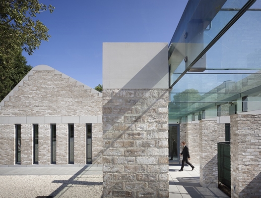 Voor de oude aula is galerij gerealiseerd. Het pad dat hiermee gemaakt wordt loopt aan weerszijden als gang door in een nieuwe vleugel. Aan weerszijden van deze gang liggen de verschillende ruimtes van het uitvaartcentrum, van afscheidruimte tot crematieruimte. Achter de oude aula is een grotere nieuwe aula gebouwd.