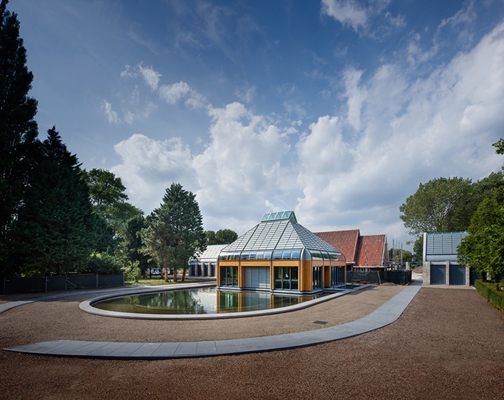 “De nieuwbouw hebben we opgevat als een stel paviljoentjes die onderling gekoppeld zijn”, zegt Cito. “Bezoekers bewegen steeds tussen binnen en buiten. Daarbij ervaren ze continu de omgeving: de zon, de regen, de wind, de temperatuur, de aarde, het water… In het ritueel van het afscheid nemen ontstaat zo een sterke cadans.”