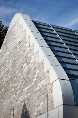 De transparantie van de gevel wisselt overigens door het complex heen. Deze is volledig afgestemd op de functie van de ruimte. De nieuwe aula is rondom helemaal voorzien van ramen en biedt een panoramisch uitzicht over de begraafplaats.