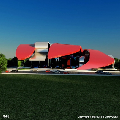 Motorkap als dak voor Maserati Museum