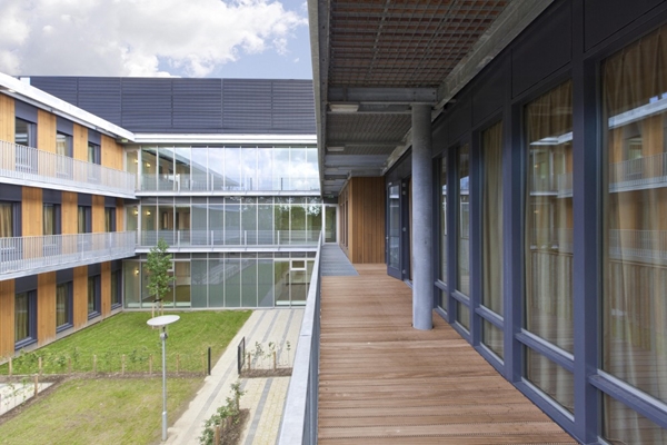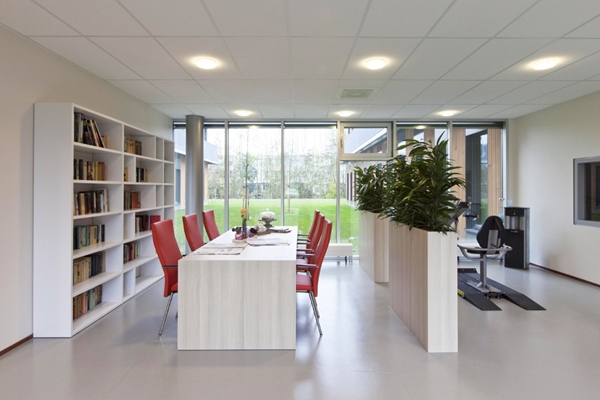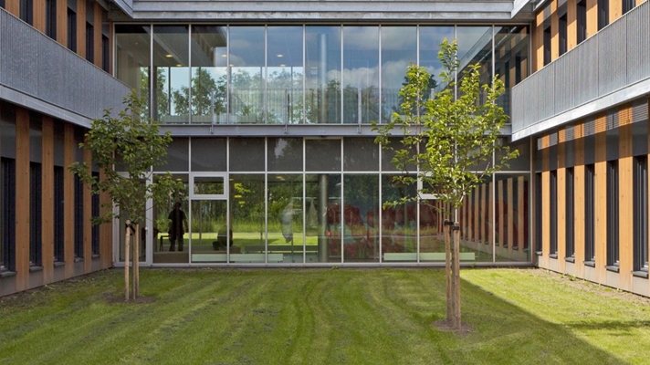 Ook bieden vrijwel alle ruimtes zicht naar buiten. “We hebben ook het terrein rond het gebouw ingericht en daarbij hebben we veel groen geplant. Doordat de bomen en gewassen door de seizoenen heen van gedaante veranderen, blijven de patiënten zich bewust van de tijd en het leven dat doorgaat”, zegt De Jong.
