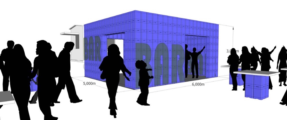 “De drie ontwerpen bestaan allemaal uit duurzame materialen. De kassa en informatiebalie wordt van hout en is gebaseerd op de toren van Babel. Het idee hierachter is dat Europa een veeltalig bouwwerk is dat nog steeds niet af is. Het horecapaviljoen is gebouwd van jerrycans die gevuld zijn met water uit de Bleek”, aldus het Twentse bureau.