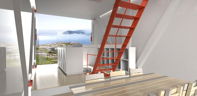 Isolée heeft vier verdiepingen, waarover de techniek, de woonkamer, de keuken en eetruimte, en de slaapkamer en badkamer zijn verdeeld. De derde verdieping heeft ook een terras, dat uitzicht biedt over het omringende landschap. Welk landschap dan ook, want Isolée kan in de optiek van de ontwerpers worden afgestemd op verschillende omgevingen.