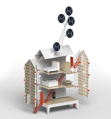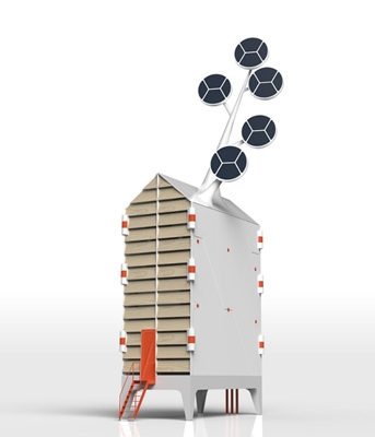 Zonne-energie voor de woning wordt verkregen via de ‘panelenboom’ op het dak van Isolée. De fotovoltaïsche panelen volgen de baan van de zon. Dankzij de huishoge shutters, de boom met zonnepanelen en een slim verwarmingssysteem, zijn de gebruikers van Isolée nauwelijks afhankelijk van brandstoffen. Een verwarmingssysteem is verwerkt in de constructie van het huis. De vloeistof die daarin circuleert wordt verhit via een houtkachel. De elektriciteit voor de circulatiepomp wordt verkregen uit zonne-energie. Het hout voor de kachel ligt opgeslagen in een ruimte die zowel van buitenaf als van binnenuit bereikbaar is. Alle ledverlichting werkt op oplaadbare accu’s.